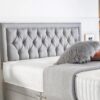 To give your bedroom a touch of elegance and flair, the divan bed base has four exquisitely placed chrome gliders for feet in addition to several chrome accents on the base itself. A luxurious headboard of your choosing is included with the set. It includes a pleated, hand-crafted headboard.